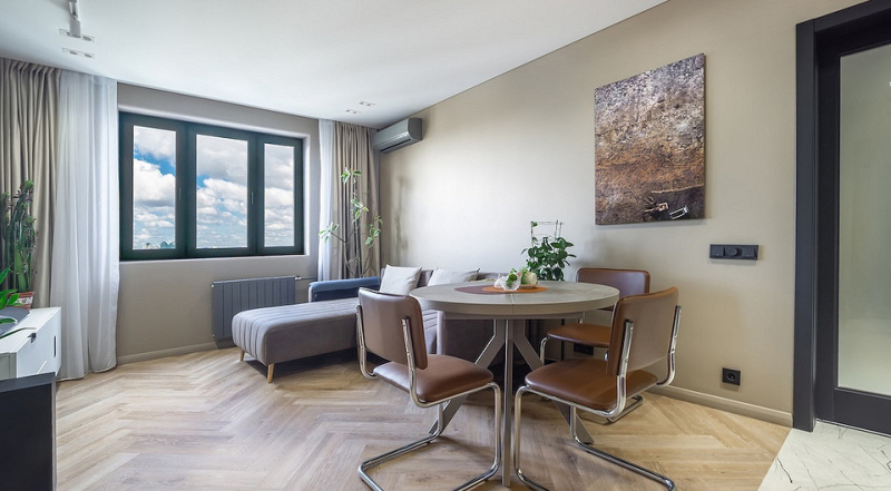 Внутренний блок не должен дуть холодным воздухом прямо на людей. Неподходящие места для его установки — стены напротив кровати, обеденного стола, дивана в гостиной. Оптимальные — над кроватью, диваном или столом, на боковой стене по отношению к ним. Но правила безопасного монтажа важнее комфорта.
