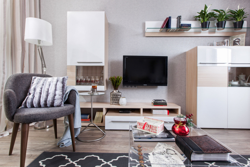 Ещё вариант — переделать старую мебель. Например, перекрасить советскую стенку в однородный светлый оттенок или обклеить её плёнкой. Старые кресла и стулья можно перетянуть тканью с модным принтом.